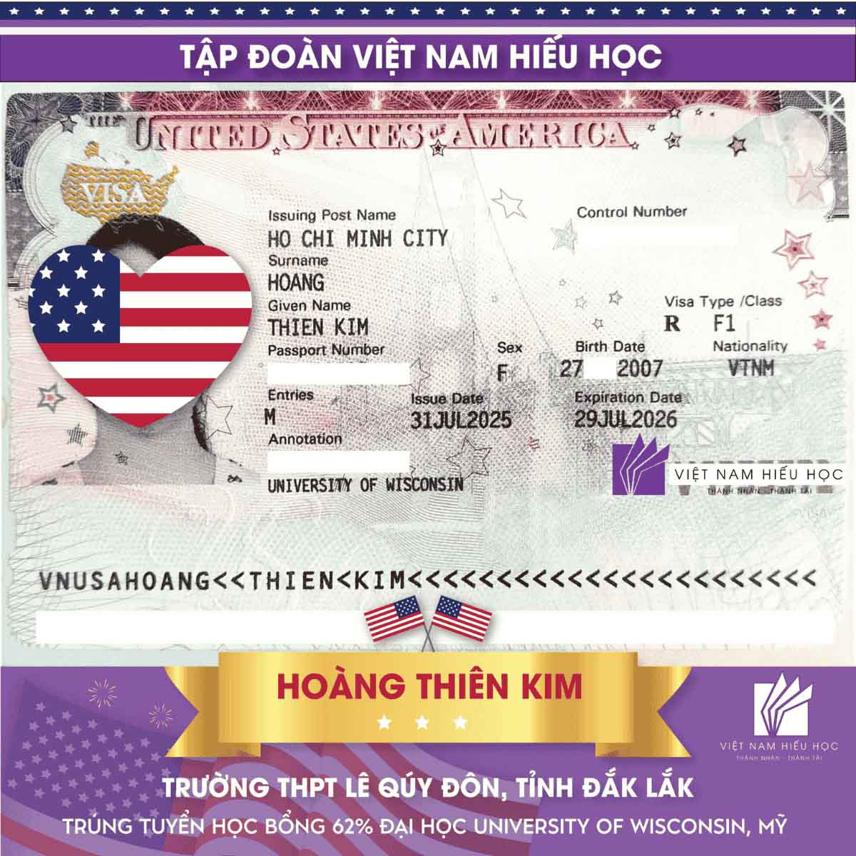 “Hạt giống vàng” Lê Quý Đôn chinh phục giấc mơ du học Mỹ với học bổng 62% từ University of Wisconsin–Superior