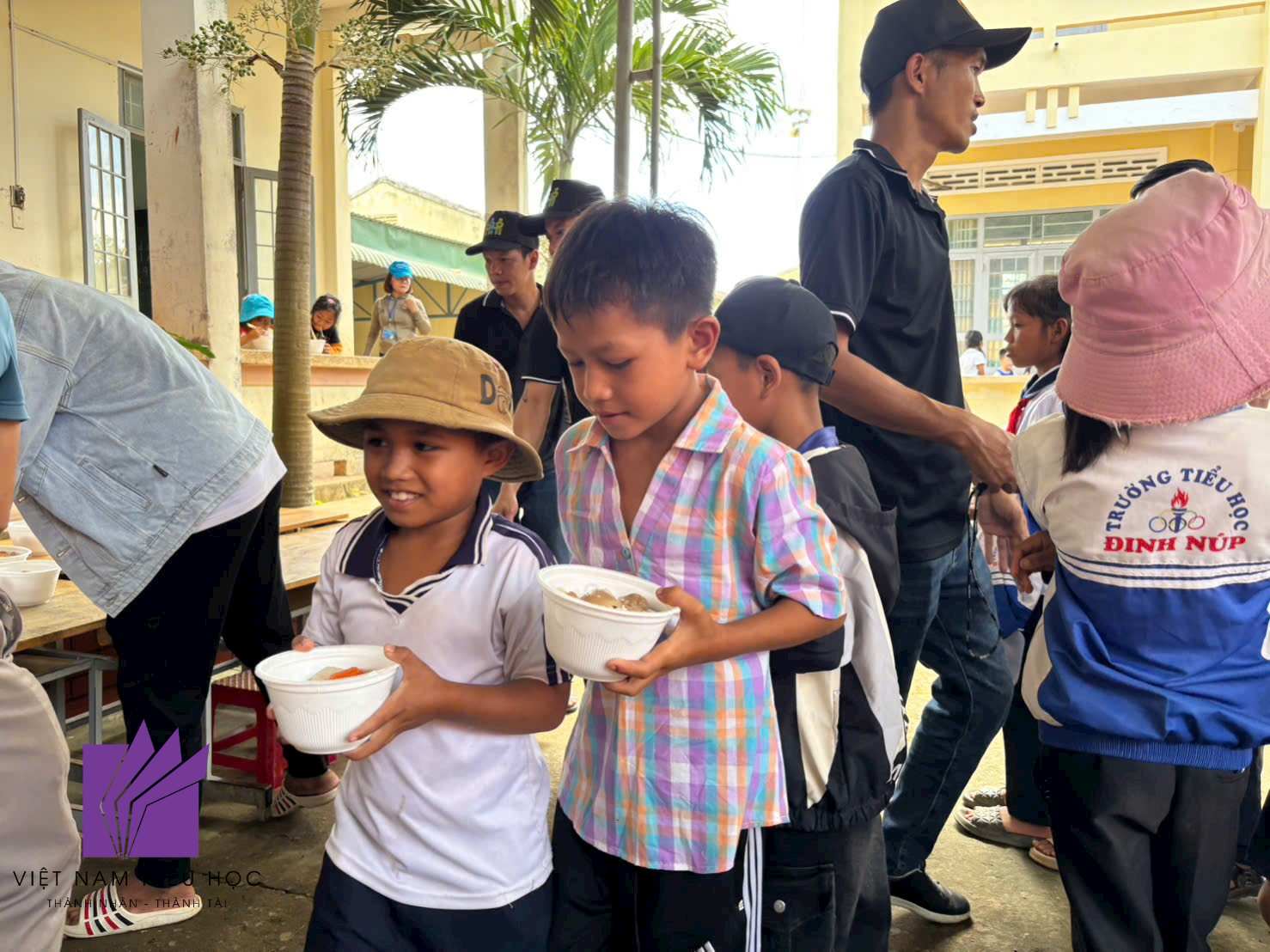 Đặc biệt, Việt Nam Hiếu Học xin ghi nhận tấm lòng của thầy giáo Phạm Vương, người nhiều năm qua đều đặn trở lại Đắk Lắk, mang theo yêu thương và những bữa ăn ấm áp cho các em nhỏ cùng gia đình.