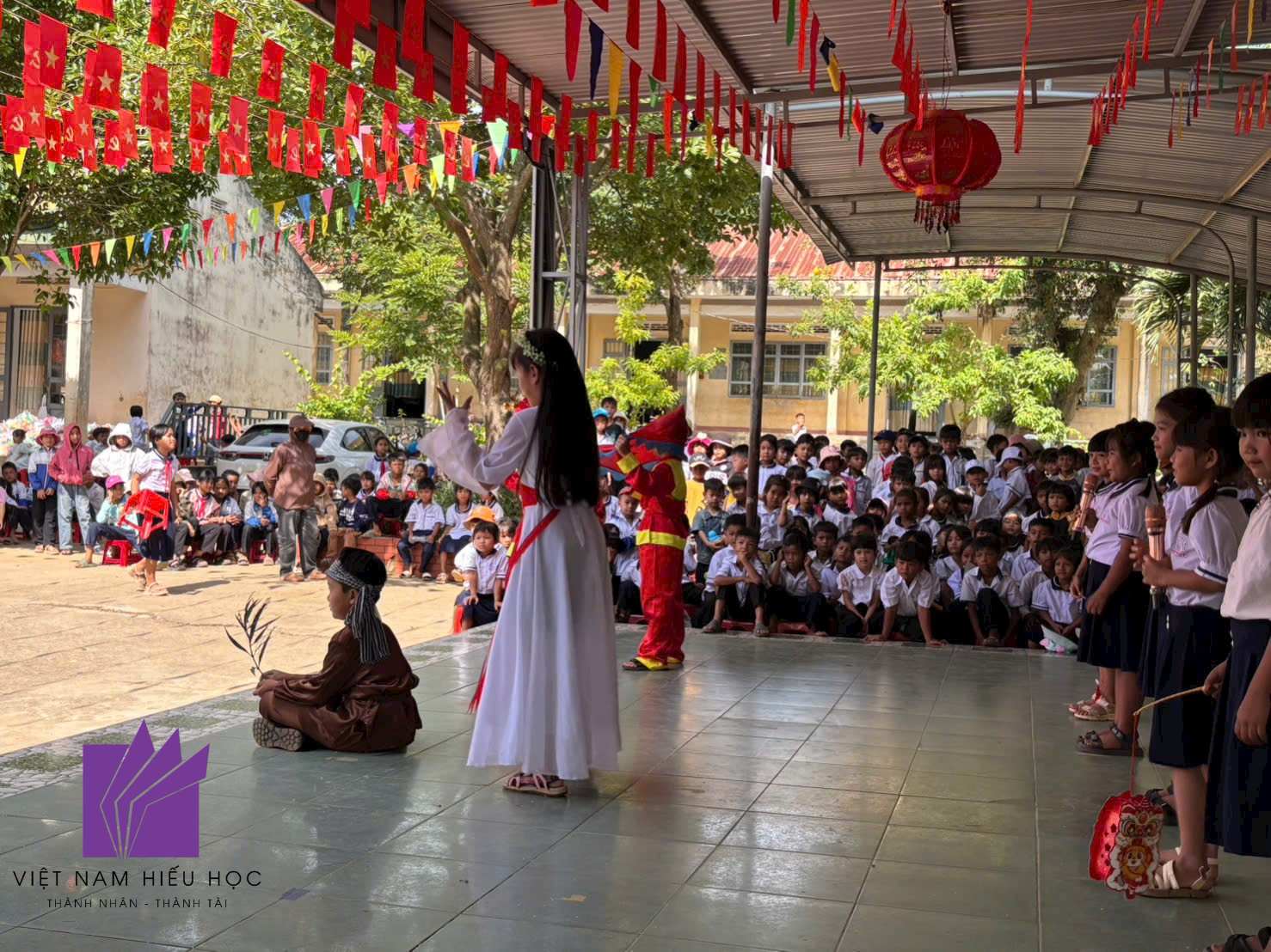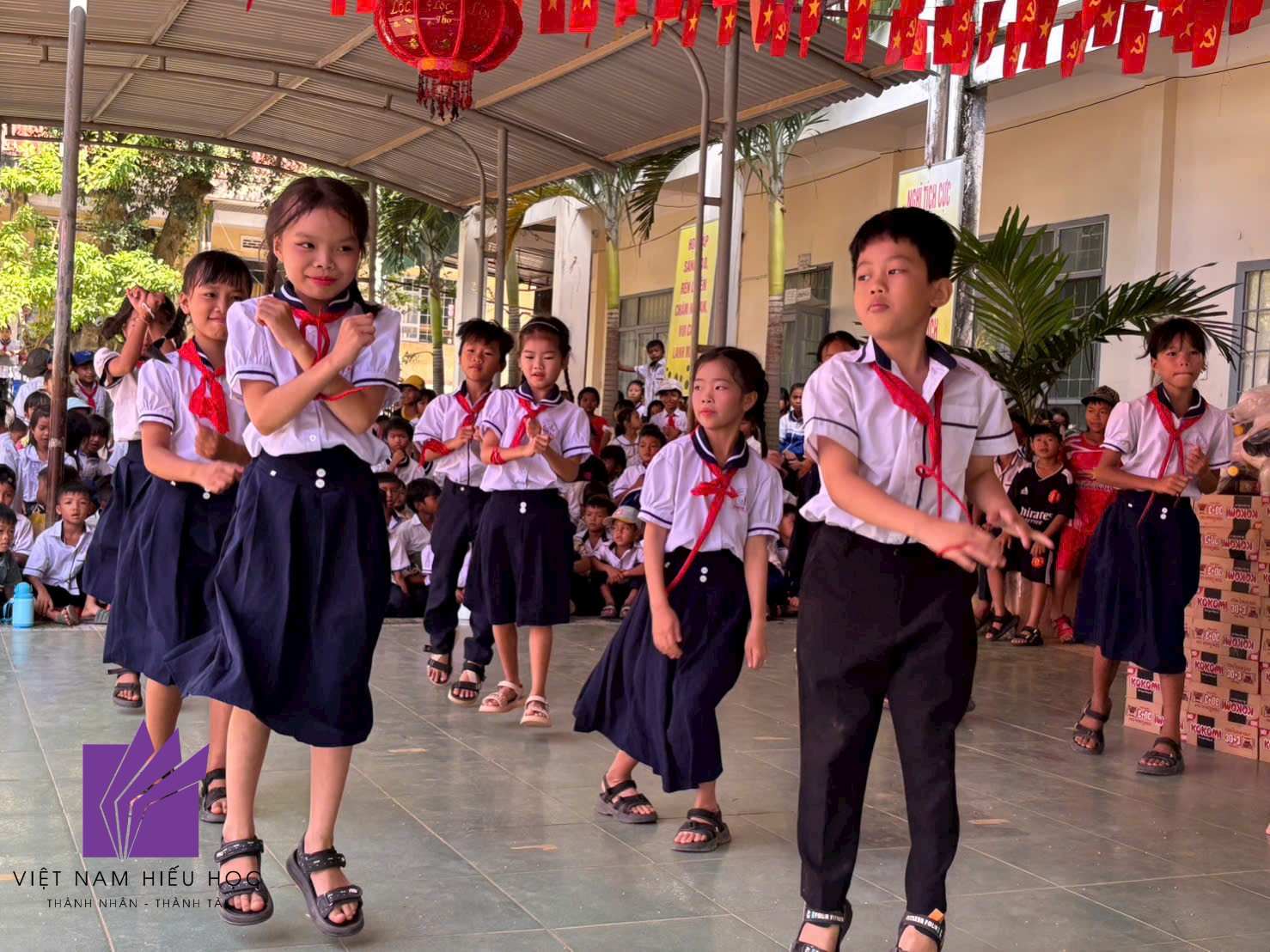 Các em học sinh biểu diễn các tiết mục văn nghệ, tạo nên một ngày hội Trung Thu trọn vẹn, đầy niềm vui và tiếng cười.