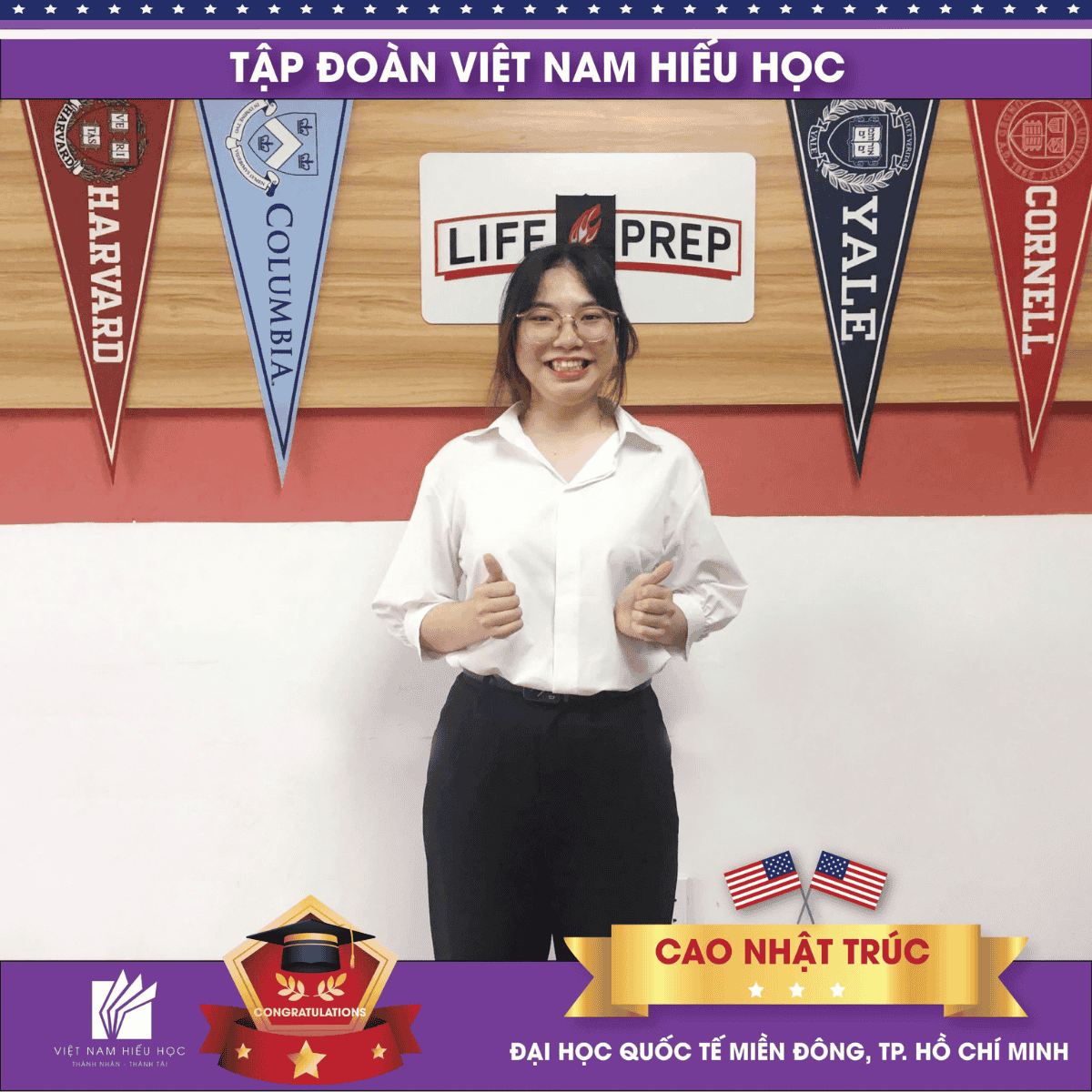 Không chỉ nổi bật ở thành tích học tập, Trúc còn là một cô gái hoạt bát, lạc quan và lan tỏa nguồn năng lượng tích cực. Thành công của em là minh chứng rõ ràng rằng, khi có mục tiêu rõ ràng và quyết tâm theo đuổi, mọi giấc mơ du học Mỹ đều có thể trở thành hiện thực.