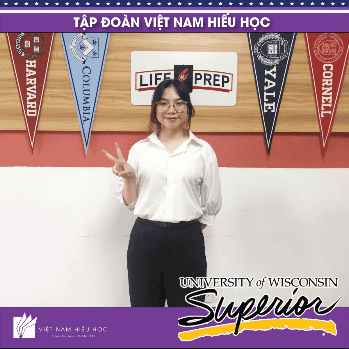 Trúc không chỉ xuất sắc giành được học bổng ngành Biochemistry từ University of Wisconsin–Superior (UWS) mà còn chính thức nhận được visa du học Mỹ. Đây là trái ngọt cho hành trình dài đầy nỗ lực của Trúc và sự đồng hành bền bỉ của các thầy cô Việt Nam Hiếu Học.