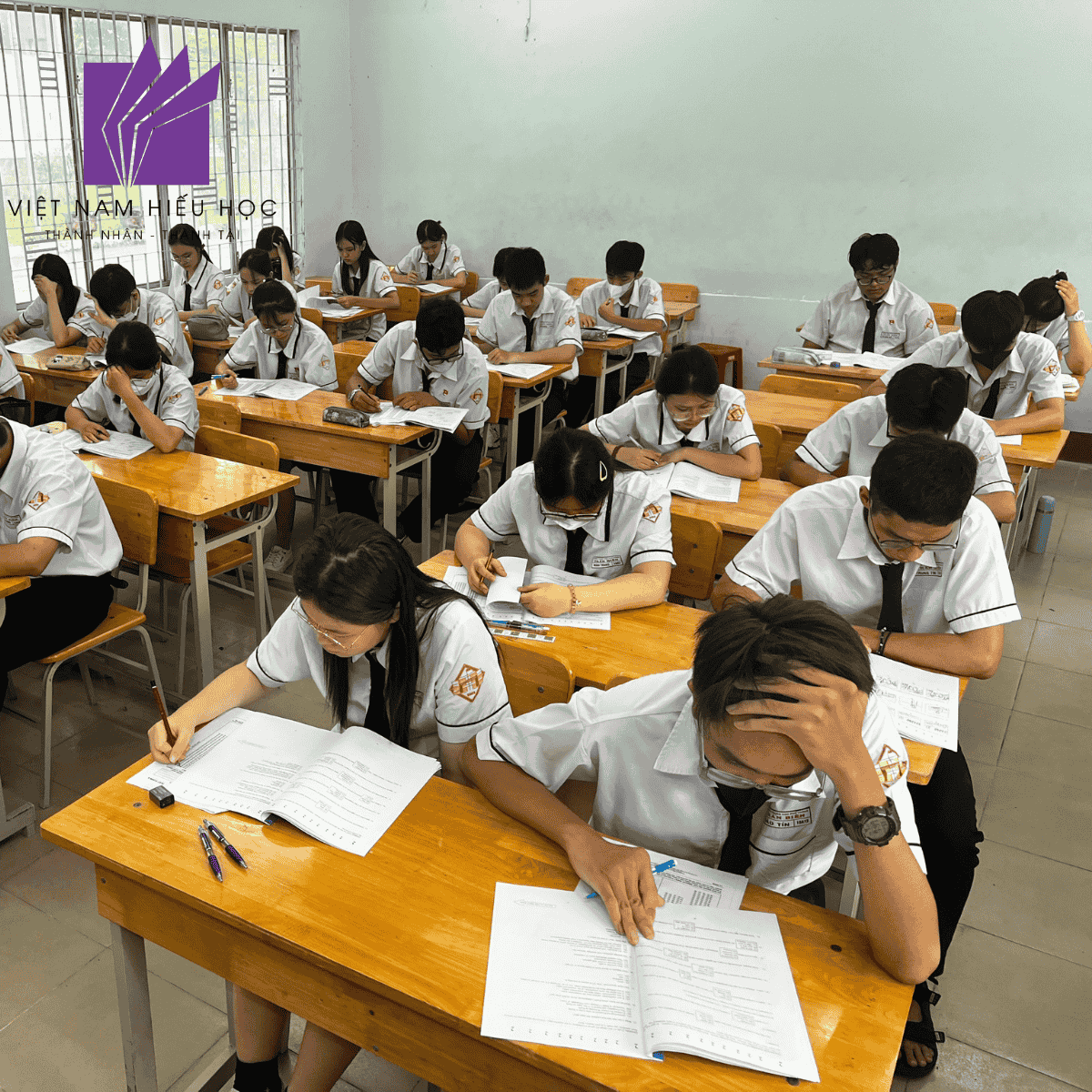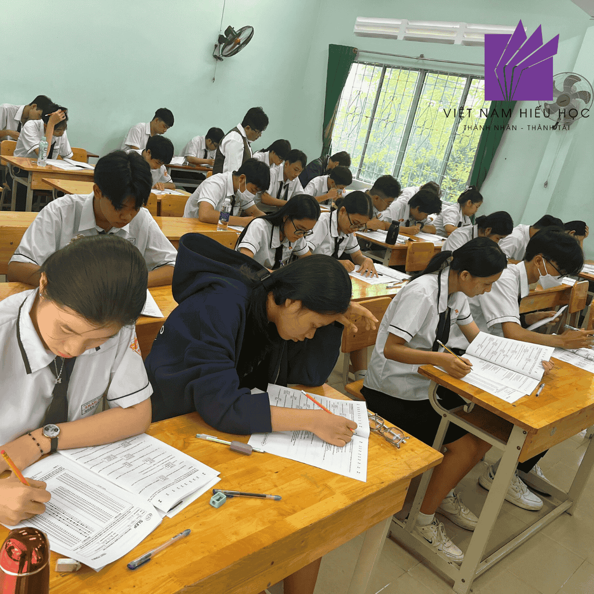 Không khí trong phòng yên lặng nhưng tràn đầy năng lượng. Từng ánh mắt tập trung, từng nét bút cẩn thận đều nói lên sự nỗ lực và hy vọng của học sinh.