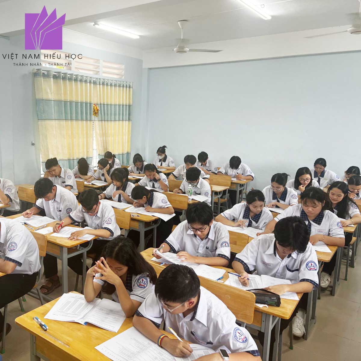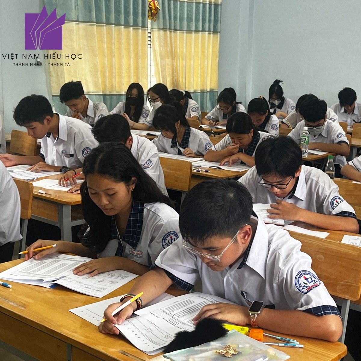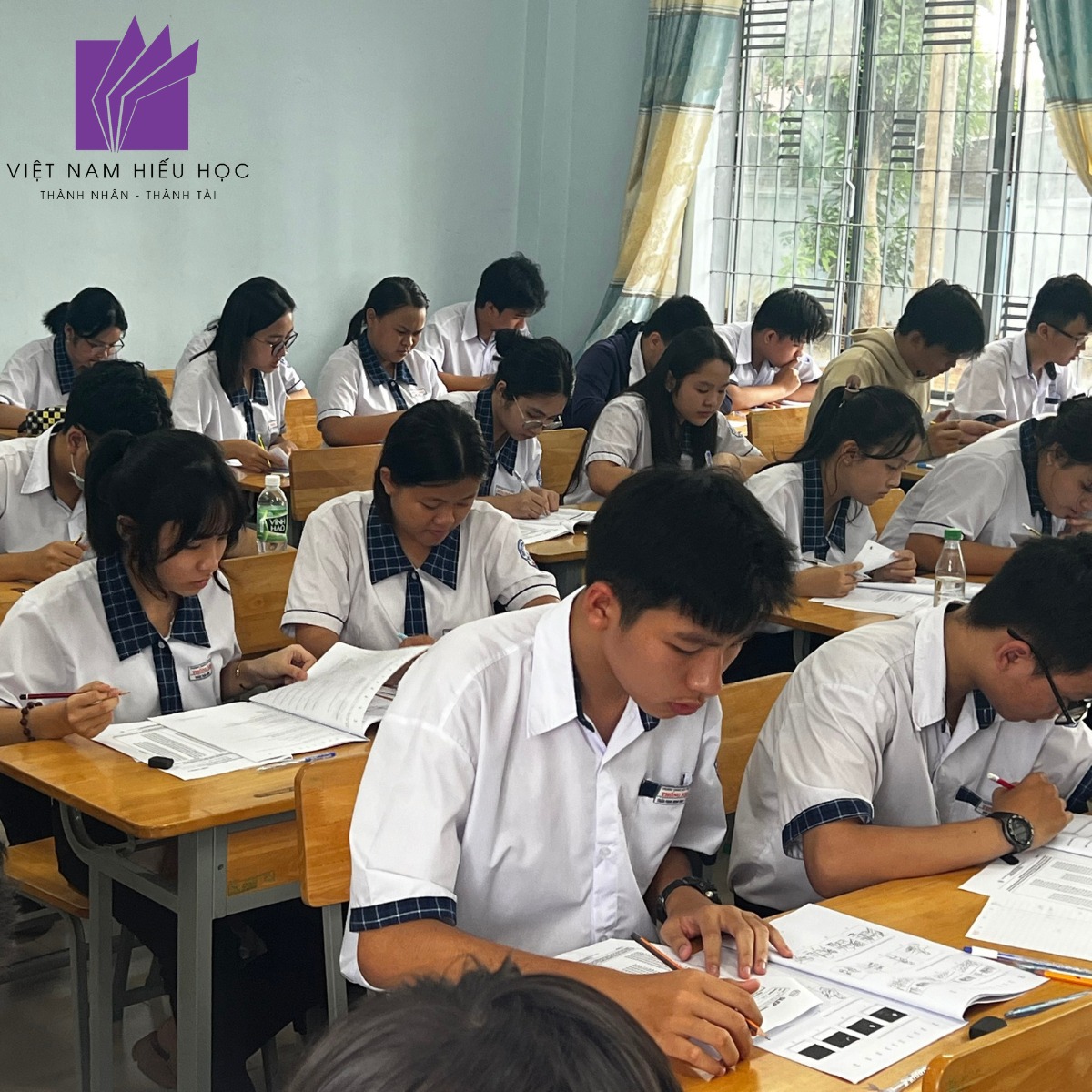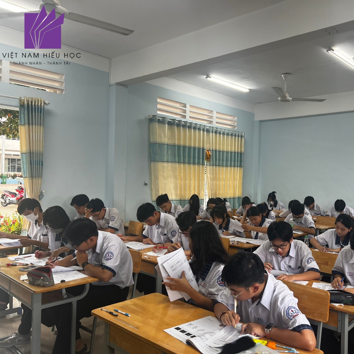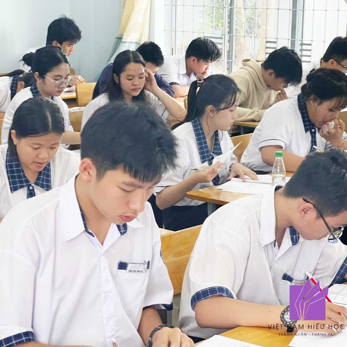 Trong những căn phòng yên tĩnh, tiếng bút viết vang đều như nhịp đập của sự quyết tâm. Chính những nỗ lực ấy đã tạo nên một ngày thi đầy ý nghĩa – không chỉ đối với học sinh mà còn với các thầy cô và đội ngũ Việt Nam Hiếu Học. Chúng tôi được chứng kiến từng bạn trẻ bước ra khỏi vùng an toàn, dám thử sức và dám mơ những giấc mơ lớn hơn.